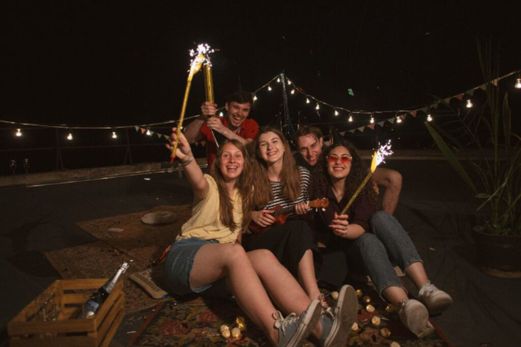 Menghabiskan malam Tahun Baru dengan menginap bersama teman-teman terdekat menawarkan suasana yang santai dan penuh keceriaan. Pesta piyama sederhana dapat menciptakan kehangatan dan gelak tawa yang melimpah.