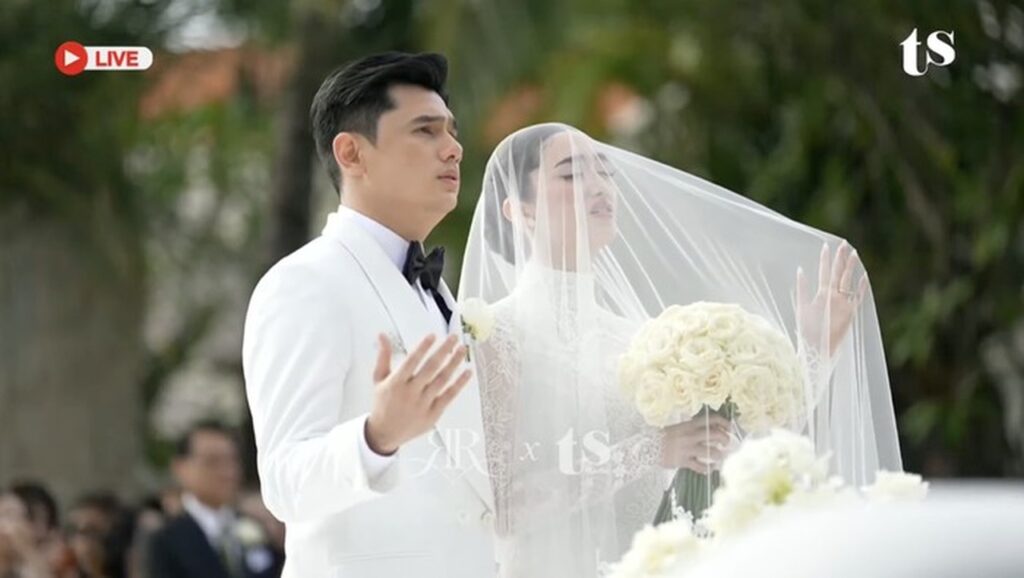 Setelah menjalin hubungan asmara selama lima tahun, keduanya mantap melangkah ke jenjang pelaminan. Momen sakral pengucapan janji pernikahan atau wedding vow disaksikan oleh keluarga, kerabat, serta para penggemar yang mengikuti jalannya upacara secara daring.